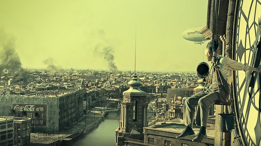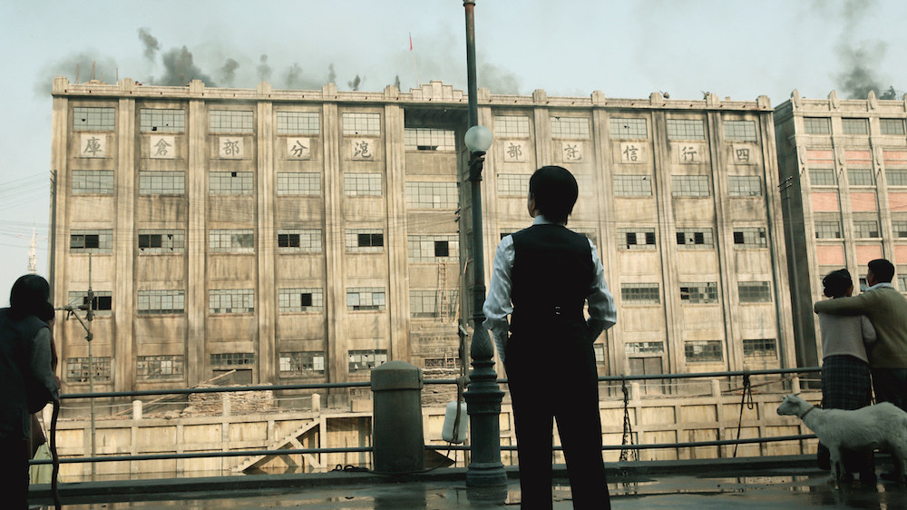 4. После этого идет заключительный кадр, где камера отъезжает от сохранившегося здания склада и демонстрирует панораму современного Шанхая с его многочисленными небоскребами, что должна показывать, чего добился Китай под руководством коммунистов.