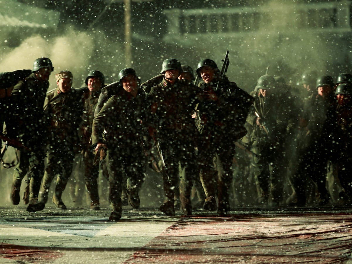Важной деталью фильма является немецкая форма китайцев - данную часть перед войной обучали инструкторы вермахта и она оснащен немецкой экипировкой, поэтому не удивляйтесь визуальным образам, где геройствуют люди в немецкой форме и в хорошо знакомых немецких касках, воевали они в любом случае на правильной стороне той войны. Собственно, покуда штурм не начался, командир строит оборону, расстреливает дезертиров и толкает духоподъемные речуги на тему того, что надо показать японским карликам, что Китай еще всем покажет.