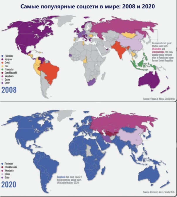 Взгляните ещё раз на сравнительные карты популярных соцсетей. Отдельно от мира выделяется только Россия и Китай, получается, что конкурентов у BigTech осталось не так уж много. С Китаем проблема - он окружен собственным Firewall (огненной стеной или золотой щит в китайской интерпретации) и Россия, на этом фоне, выглядит менее защищённой. Поэтому нашим, отечественным IT-компаниям, впору готовится к неизбежному нападению, так как высокопоставленные представители BigTech сидели в предвыборном штабе нового президента США - Джо Байдена, а, как известно, Демпартия, в своё правление, увлечена внешней политикой больше, чем внутренней.