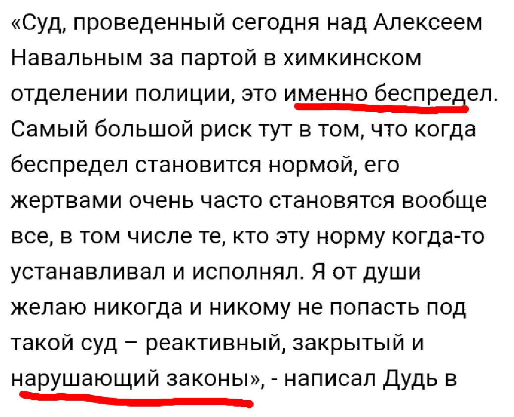 А вообще, дорогие друзья, было бы классно, если бы сегодня в камеру к Лёхе вдруг зашёл тащмайор, пододвинул стул поближе к нарам и, заговорщицки подмигнув, сообщил: «Смотри, какую мы классную штуку придумали! За каждые 500 детей, которые после твоих накруток завтра выйдут на несанкционированные митинги по всей России и, возможно, испортят себе жизнь административкой, к твоему сроку будет добавляться по 2 года в колонии общего режима. За - не дай бог - выхваченные статьи УК - по 3 года. Здорово, правда? Но это не самое классное. Самое классное – считать будем со слов организаторов твоих митингов». И, рассмеявшись, ушёл бы дальше по своим творческим делам.