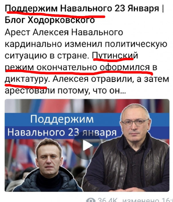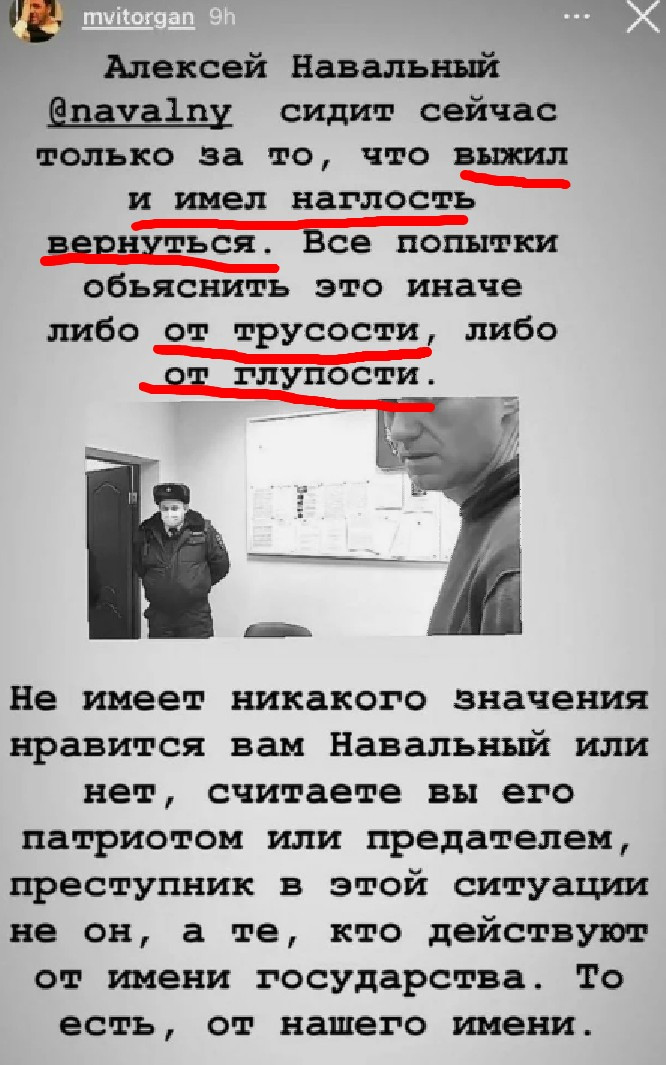Граждане, поддерживая Навального, вы вольно или невольно встаете в один ряд с враждебным России блоком НАТО, а также значительной части олигархата ельцинского призыва, оторванной от кормушки.