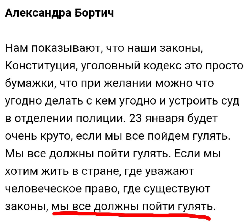 Мне как мужчине очень нравится эта женщина, как зрителю ее работа в фильме "Холоп". Но куда ты, девочка, лезешь? Ты хочешь "гулять" как в Белоруссии более пол-года гуляли? Но это же потенциально опасно для "гуляющих". Если что-то непоправимое случится с кем-то из детей и подростков, кто пошел из-за тебя как потом жить то будешь с этим? Может оторвать от гос денег всех тех, кто потом призывает действовать во вред стране? Шли бы погуляли куда-нибудь подальше.