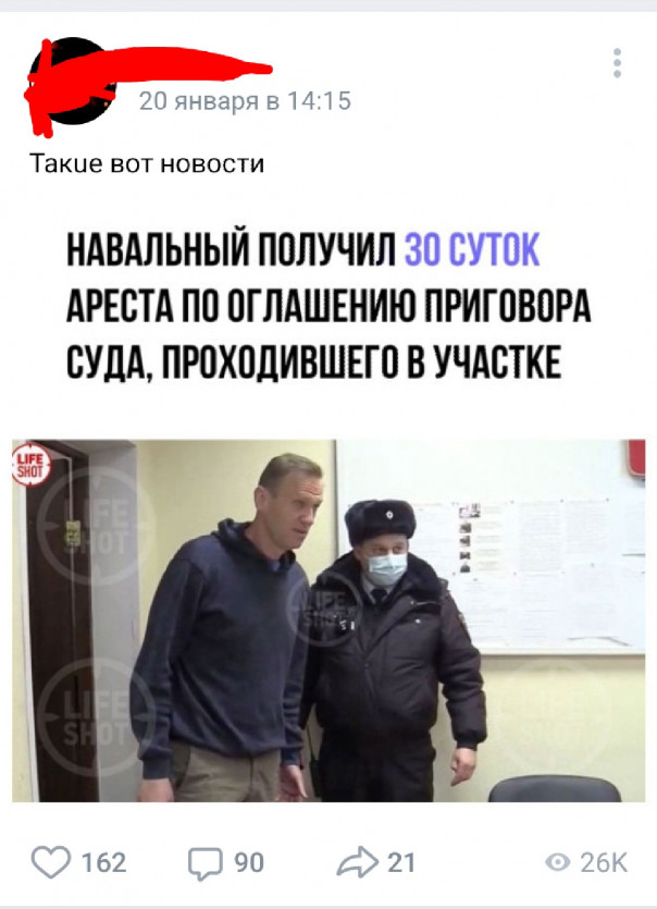 В ВК я подписан на несколько аполитичных групп, смотрю там всякие приколюшки. И вот какие "аполитичные" новости я увидел у себя в ленте... Сделано все чтобы чтобы даже люди далёкие от политики узнали о Навальном, причем под выгодным оппозиции углом.