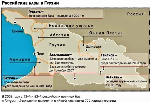 Длительная финансовая и военно-техническая «подпитка» Грузии со стороны РФ была обусловлена, скорее всего, тем, что Москва стремилась сохранить свои военные объекты и базы в Вазиани (вблизи Тбилиси), портах Батуми, Поти и вблизи грузино-турецкой сухопутной границы (Ахалкалаки).