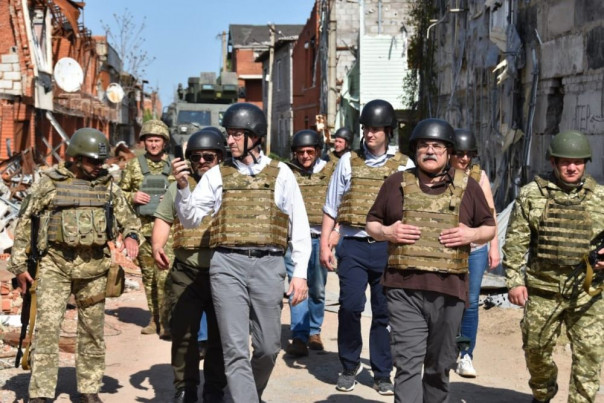Заокеанские гости на улицах разрушенного Широкино. Источник – Штаб ООС