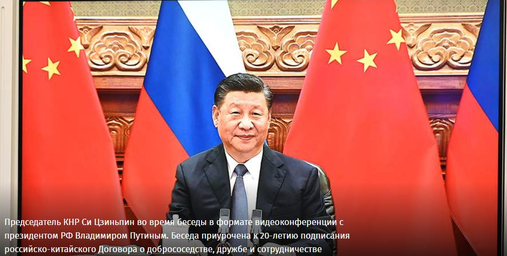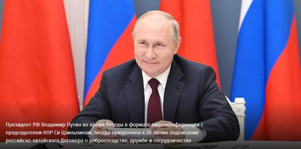Беседа Владимира Путина с Си Цзиньпином, приуроченная к 20-летию подписания российско-китайского договора о добрососедстве, дружбе и сотрудничестве, прошла по специальному закрытому каналу видеосвязи. Как пояснил пресс-секретарь президента РФ Дмитрий Песков, это позволяет лидерам «осуществлять переговоры с самым высоким грифом секретности».