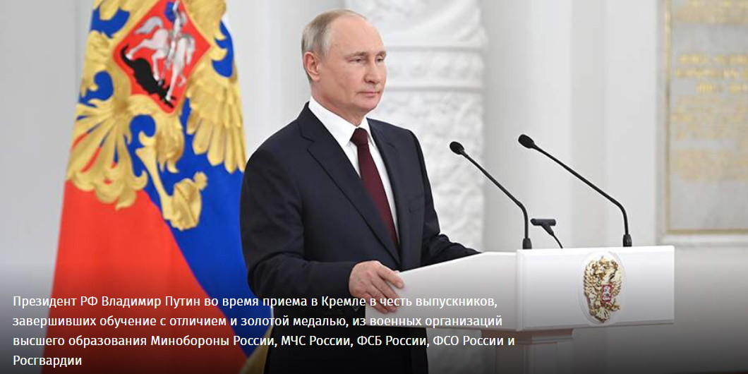 В этот же день Владимир Путин встретился с выпускниками 18 военных вузов Минобороны, МЧС, ФСБ, ФСО и Росгвардии, завершивших обучение с отличием и золотой медалью. Президент напомнил, что роль и ответственность командира сейчас многократно возрастают. По его словам, в настоящий момент нужна не только фундаментальная теоретическая подготовка в области военной науки, но и готовность постоянно учиться самому и помогать подчиненным осваивать новейшие образцы военной техники, поскольку современные Вооруженные Силы — это настоящий сплав передовых технологий, инноваций и знаний.