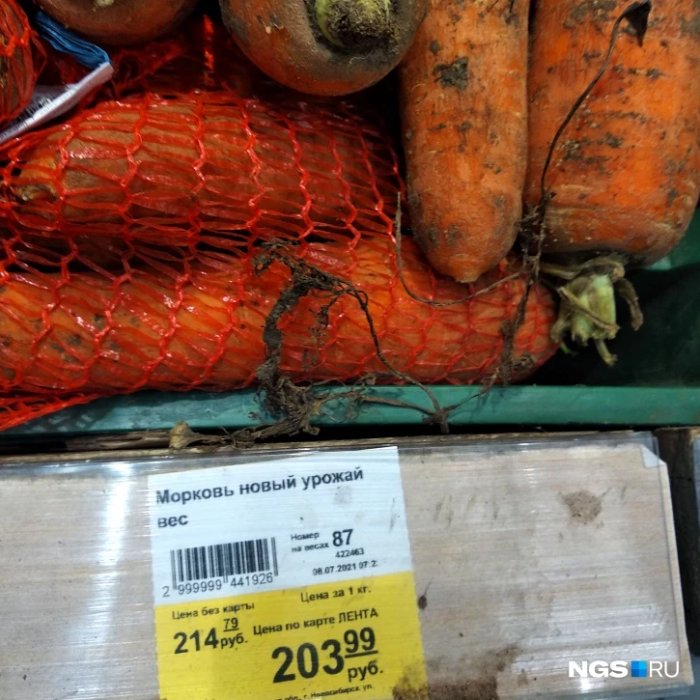 Морковка и другие овощи начали дорожать еще в прошлом месяце, но на этой неделе сеть «Лента» решила поставить рекорд. В ее новосибирских супермаркетах появилась морковь нового урожая, произведенная в Новосибирской области, с розничной ценой почти в 215 рублей за килограмм (без учета скидки по карте «Лента»).