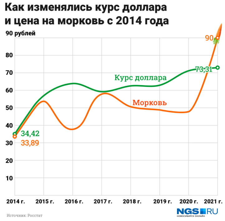 Как менялись курс доллара и цена килограмма моркови за последние семь лет