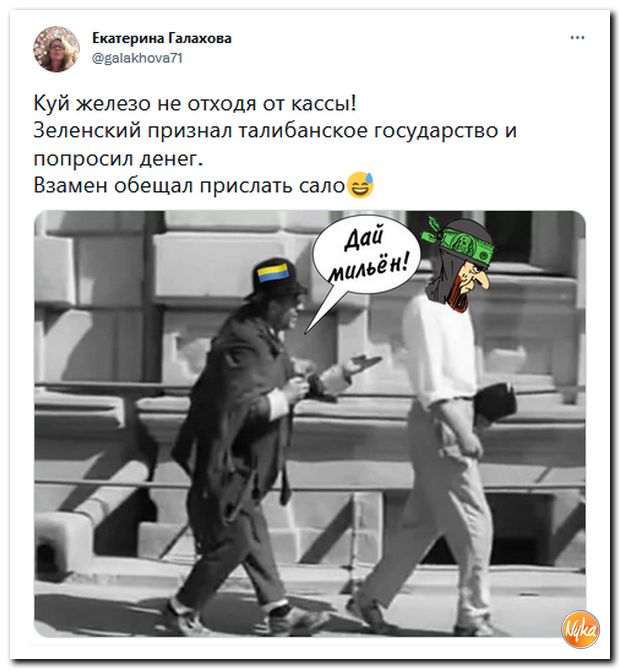 Да, в определенной степени талибы слегка подос…подгадили нашей державе. За последние сутки очень оживилась кремлевская пропаганда, которая подкидывает украинцам свои тухлые нарративы. Ну там фотки вертолетов «Чинук» с разницей в 46 лет, бородатых мужиков, которые осваиваются в президентском дворце, драки за место в самолет. Проводятся изначально неприемлемые параллели с ихними «соросятами» и нашими. Типа, посмотрите, как быстро бегут из Кабула представители негосударственных организаций «Геи Афганистана за равные права с женщинами», «Восстановим наследие Баграма», «Моджахеды без границ» и так далее. Вы так же будете драться в «Борисполе» за место в самолете «Киев-Кишинев». Поймите, у нас – это другое!