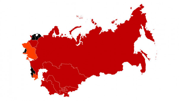 Красным и оранжевым обозначены республики, которые были готовы войти в состав Союза Суверенных Государств (ССГ); чёрным — государства, отказавшиеся подписать новый союзный договор.
