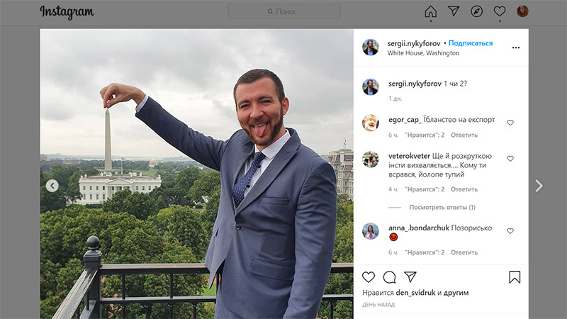Радость украинского президента в связи с тем, что администрация Байдена, видимо, не попрёт его с "княжения" в Киеве, недёшево обошлась украинцам: в отличие от экономящих народные деньги западных президентов, канцлеров, премьеров и королей, довольствовавшихся скромным гостевым домом рядом с резиденцией американского президента, Зеленский со своим многочисленным окружением остановился в пятизвёздочном отеле Hay-Adams. Согласно его сайту, стоимость номера на двоих на одну ночь составляет там от 379 до почти 2 тысяч долларов. На нищей Украине, разумеется, обратили внимание, что там обосновались "чуть ли не всё украинское правительство и офис президента". Эти временщики не только наслаждались жизнью, но и хулиганили. Пресс-секретарь Зеленского Сергей Никифоров опубликовал, например, в "Инстаграме" фото на фоне Белого дома, на котором он, высунув язык, сделал вид, что держит верхушку Монумента Джорджа Вашингтона. Это вызвало, естественно, волну протеста в соцсети: "Не только позорище, но и преступление против государства", "Перестаньте позорить страну", "Ты официальное лицо, не унижай страну", "Мальчик Сережа, 35 годиков".