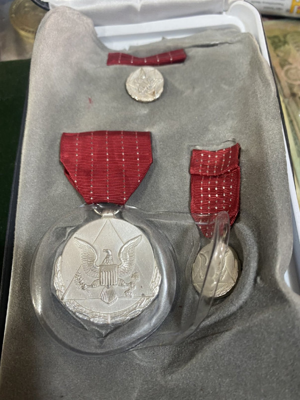 Далее, медаль "За заслуги" (третье фото крайняя левая) вручаемая военнослужащим Вооруженных сил Соединенных Штатов, которые отличились выдающимися заслугами или службой Соединенным Штатам.