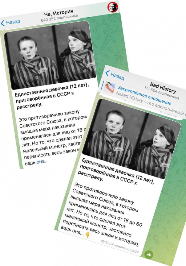 Идиоты с квазиисторических каналов постят вот такие фото. «Девочка 12 лет, приговоренная к расстрелу в СССР». Ужас. Дальше жуткая история, мораль которой ясна - «людоедский режим» ну и так далее.