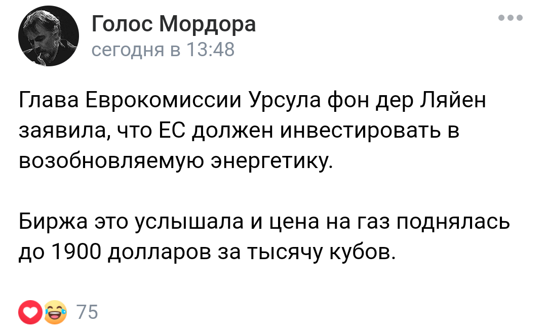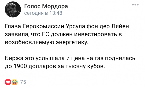 Цены на газ в Европе продолжают бить исторический максимум - в ходе торгов стоимость фьючерсов составила больше 1900 долларов за кубометр. За пару дней цена выросла примерно на тысячу долларов, и она не собирается останавливаться.