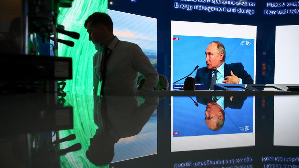 На одной из сессий РЭН президент Путин отвечал на вопросы модератора сессии — журналистки телеканала CNBC. Она по нескольку раз повторяла, что поставки энергоносителей — один из видов оружия РФ, и не обращала внимания на то, что президент опровергает её заявления. Например, он ей сообщал, что РФ нарастила поставки газа в ЕС, а она вновь спрашивала, почему поставки сократились.