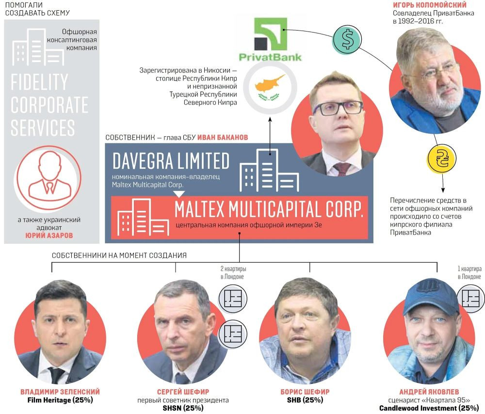 Сейчас Зеленский сталкивается с сильным давлением Запада, требующим, в частности, сказать «окончательное прощай» Коломойскому. Западные хозяева указали президенту-комику его место. Сигналом Зеленскому стала недавняя публикация «досье Пандоры», где подробно раскрыты офшорные схемы фирм Зеленского, фигурируют люди из его старого окружения, включая Ивана Баканова, а главное – делается вывод об участии Зеленского, Баканова и Кo в схемах Коломойского по выводу капиталов из Приватбанка.