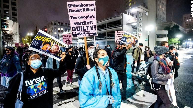 По Америке прокатились массовые протесты. В Нью-Йорке демонстранты перекрыли Бруклинский мост, требуя пересмотра вердикта суда, в Портленде сломали ворота тюрьмы и разбили окна типографии городской администрации. Протестующие против приговора Риттенхаусу собрались на Федеральной площади Чикаго и скандировали: «Народный приговор: виновен!» В Окленде, штат Калифорния, около сотни протестующих прошли маршем от мэрии к зданию администрации, выкрикивая: «Революция и больше ничего!»