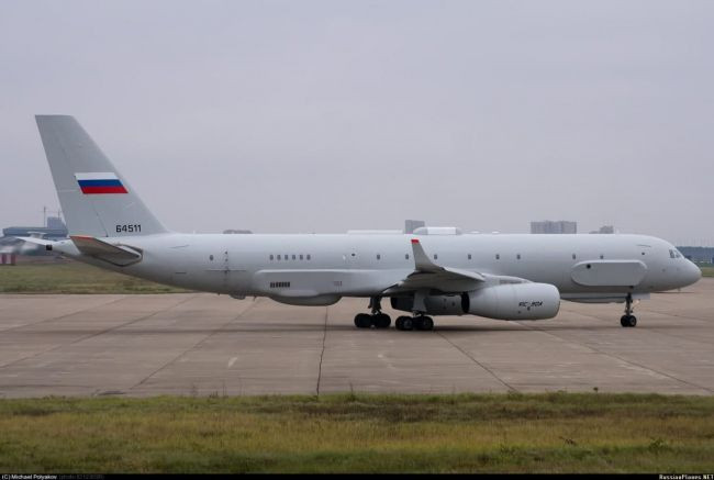 На бортовых образующих носовой части фюзеляжа самолёта Ту-214Р можно рассмотреть радиопрозрачные наплывы АФАР-полотен, являющихся основой бортового многодиапазонного радиолокационного комплекса МРК-411