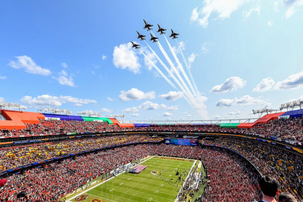 "Тандерберды" ВВС США на матче НФЛ, Филадельфия против Вашингтон, поле FedEx, Заземление, Мэриленд, 10 сентября 2017 г. (Рики Боуден/Армия США)