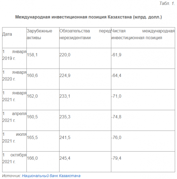 Из всех зарубежных активов стран, попадающих в «чёрные списки» Запада, как показывает опыт (Ирак, Ливия, Иран и др.), под ударом, в первую очередь, оказываются международные валютные резервы. У Казахстана все международные резервы, согласно последним данным НБК (по состоянию на ноябрь 2021 г.), составили 35,48 млрд. долл. Однако почти 2/3 этих резервов приходится на золото, расположенное на территории Казахстана. Наибольший риск «заморозки» существует лишь в отношении официальных валютных резервов в размере 11,95 млрд. долл. (примерно 7% всех зарубежных активов Казахстана).