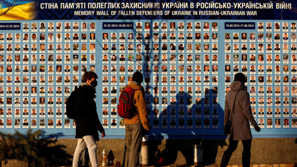 Жители проходят вдоль Стены памяти погибших защитников Украины в Киеве