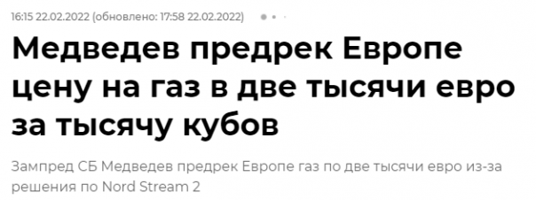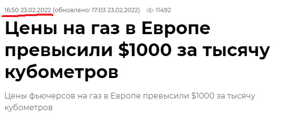 Прошло 11 минут после крайней новости. Стоимость контрактов на газ выросла с 932,3 доллара (расчётная цена вторника 22.02.22) на 7,8% до 1004,7 доллара за тысячу кубов.