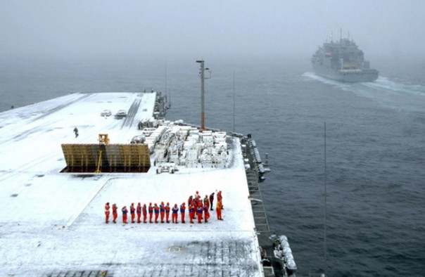 Однако и тогда всё пошло наперекосяк. Два десантных корабля-дока ВМС США «Ганстон холл» и «Нью-Йорк» попали в сильнейший шторм и получили повреждения, несовместимые с дальнейшим участием в учениях. А сам авианосец обледенел до такой степени, что был вынужден прекратить полеты палубной авиации и вышел из строя как боевая единица.