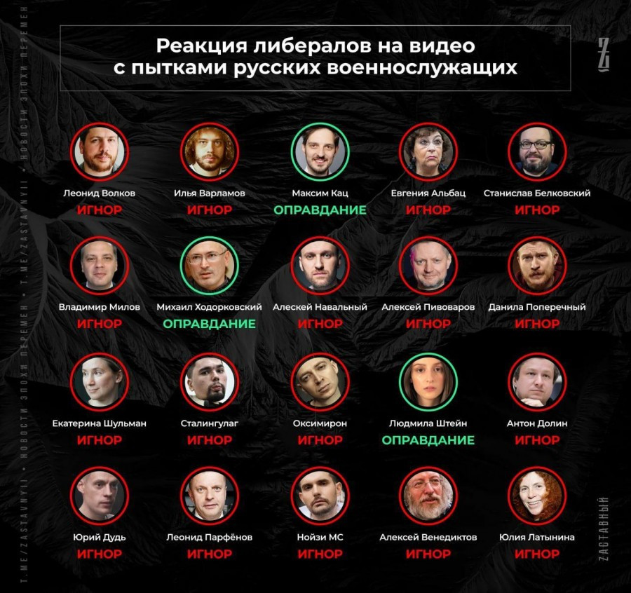 На этом фоне даже не хочется разбирать комментарии местных умалишенных, которые пишут... ну, вы поняли, лучше давайте поглядим как это было? Потому что, вот, например, картинка, как либеральные оппозиционеры отреагировали на пытки наших военнослужащих.