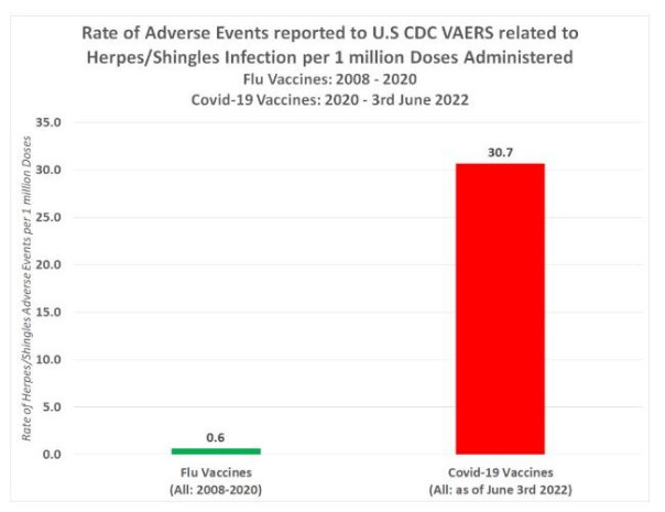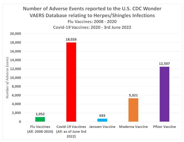 Официальные данные правительства США доказывают, что вакцинация против Covid-19 увеличивает риск развития герпетического заболевания, в том числе и обезьяньей оспы у человека, как минимум в 50 раз.