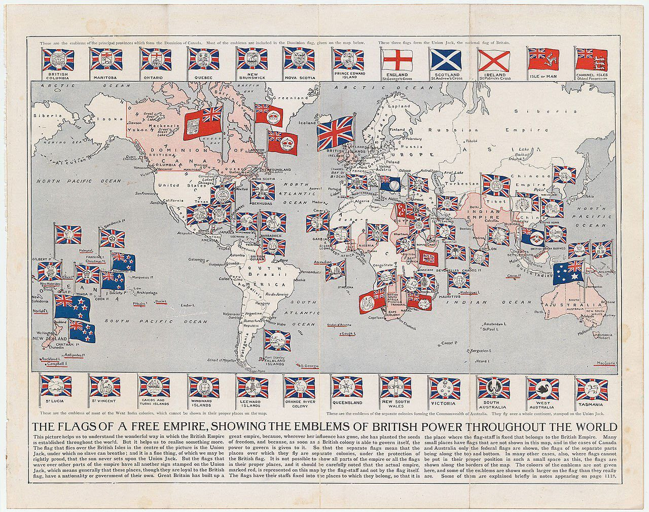 Британская колониальная империя складывалась нескольких веков. В XIX веке британские колонии располагались на пяти континентах. Своего апогея империя достигла в 1919 году, когда Соединённое Королевство управляло землями, простиравшимися на 31 878 965 км², что составляло около 22% земной суши. Общая численность населения империи достигала без малого полмиллиарда человек, примерно четверть жителей Земли.