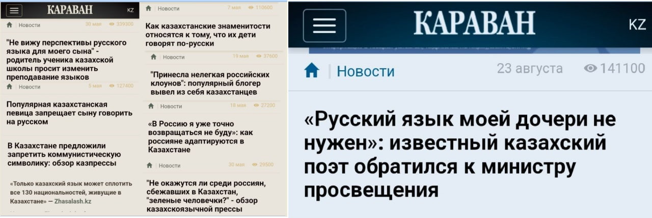 То есть формально, по объективным причинам с русским языком в Казахстане еще нормально. Однако неформально положение близко к бедственному. Пока Токаев призывает создать некую организацию, в его стране создана система прогрессирующей русофобии. Все антироссийские издания Казахстана – это издания на русском языке.