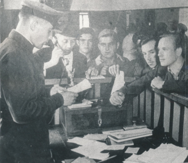 Добровольцы в военкомате Октябрьского района Москвы, 23 июня 1941 года