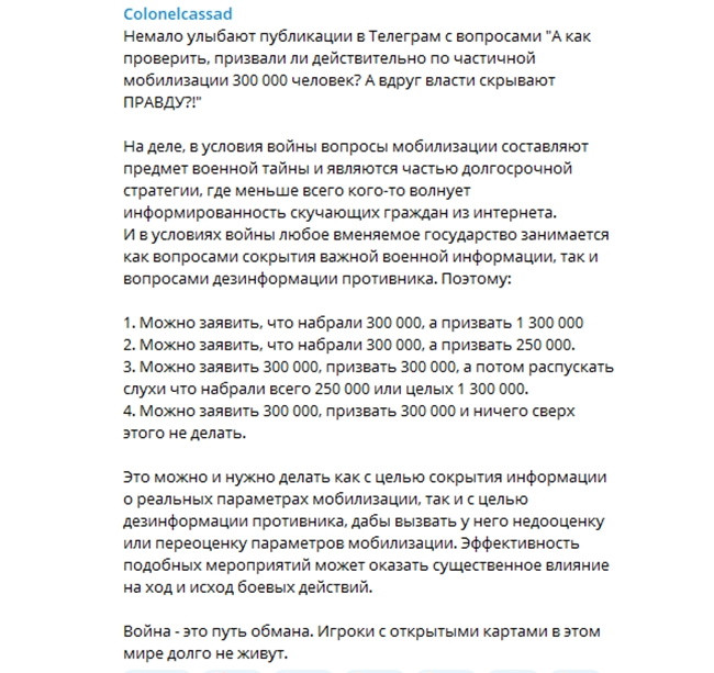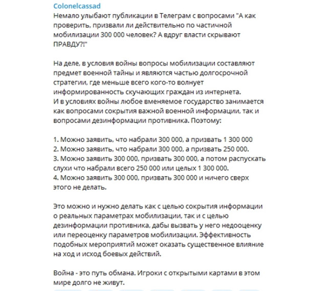 И, что характерно, вся эта вакханалия продолжается и по сей день – на восьмом месяце войны! «Народ должен знать всю правду!» – дружно вопят жаждущие хайпа и трэша Телеграм-каналы. Да что там эти доморощенные «стратеги», если даже самому президенту России на «Валдайском форуме» его ведущий при всём честном народе задает простецкий вопрос: «Владимир Владимирович! Расскажите, пожалуйста, какой план у вас насчет Специальной военной операции. А то общество озабочено».