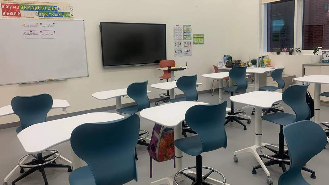 До приезда делегации министра учебное заведение казалось пустынным и даже стерильно чистым. Только в классах русского и английского языков можно было заметить следы учащихся — рисунки с монстриками и рассказы о себе.