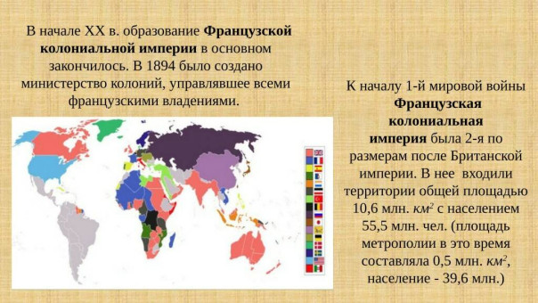 Франция, некогда жившая за счет Северной Африки, утратила свое господство в Сирии и Ливане - в 1946-м году, владения в Индии - в 1954-м, Тунисе и Марокко - в 1956-м, Гвинее, Нигере, Буркина-Фасо и Западной Африке - в 1958-м, Камеруне, Сенегале, Мали, Судане, Габоне, Чаде, Мавритании, ЦАР, Конго, Того, Бенине, Берег Слоновой кости и Мадагаскаре - в 1960-м, Алжире - в 1962-м.
