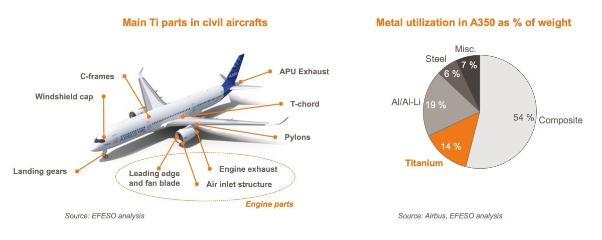 Например, 100% титана, используемого бразильской авиакомпанией Embraer, и 35% титана, используемого Boeing, поставляются из России. Сейчас авиакомпаниям приходилось искать нужные титановые детали по всему миру (титан используется при изготовлении шасси, двигателей и планеров самолетов).