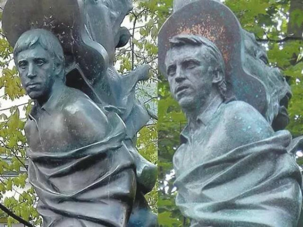 А в 2020 году к годовщине смерти 25 июля -- на надмогильном памятнике поэта на Ваганьковском кладбище поменяли… голову. Да-да, говорят, сыну поэта Никите и моднячему московскому скульптору Александру Рукавишникову никогда не нравилось изображение поэта на могиле. Ну, то, что простояло почти 40 лет, с нимбом гитарного корпуса вокруг головы. И если "нимб" все же решили оставить, то вот голову сменили.