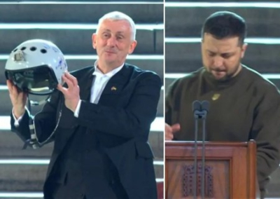 Зеленский, размахивая шлемом украинского пилота, клянчил у Лондона самолёты