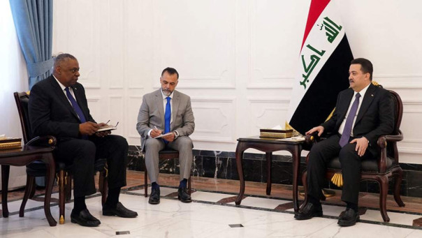 Премьер-министр Ирака Мохаммед Шиа аль-Судани во время встречи с министром обороны США Ллойдом Остином в Багдаде