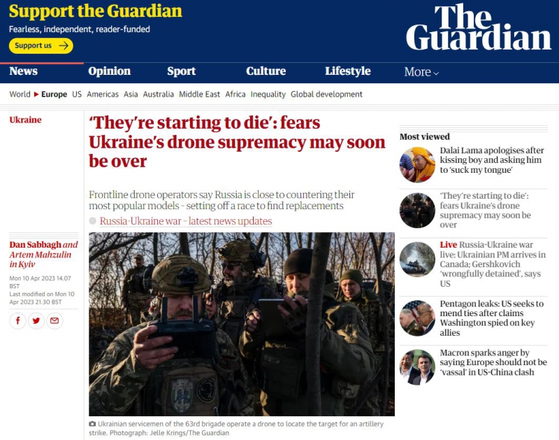 The Guardian: эффективность беспилотников ВСУ упала в десятки раз