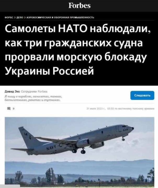 Как отметил Маркус Йонссон, стая самолетов НАТО внимательно следила за кораблями, когда они плыли в сторону Измаила, небольшого украинского порта прямо напротив Румынии на реке Дунай. Суда, предположительно, будут грузить зерно в Измаиле, затем возвращаться в Черное море и далее в иностранные порты.