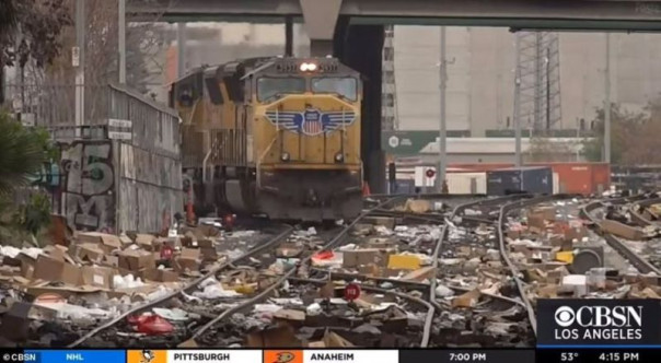 Тысячи пустых коробок валяются вдоль железнодорожных путей. Воры забирают то, что считают ценным, в частности посылки компаний Amazon, UPS, REI и др. Забирают смартфоны, одежду, обувь и украшения. Пустые коробки сразу выбрасывают, железнодорожные пути буквально завалены мусором. Горы оставленного мусора – это товары, которые воры не сочли достаточно ценными, чтобы их забрать.