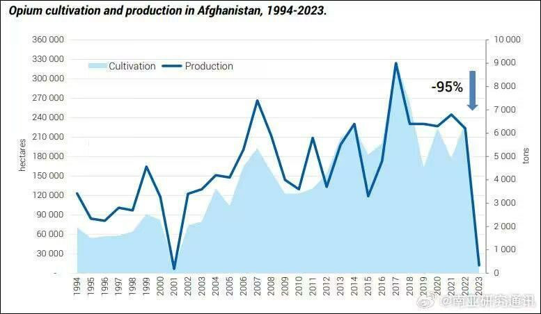 По данным Financial Times, объёмы выращивания опиумного мака в Афганистане за прошедшие после ухода США и НАТО два года рухнули почти на 99%. И теперь ему на смену могут прийти синтетические опиаты вроде фентанила, который примерно в 50 раз смертоноснее героина. В 2022 году именно фентанил привёл к гибели от передозировки наркотиками более чем 110 тысяч американцев. В мегаполисах США, где свирепствует опиоидный кризис, фентанил ещё и смешивают с транквилизатором для лошадей. Эта гремучая смесь превращает американские города в “зомбилэнды”.