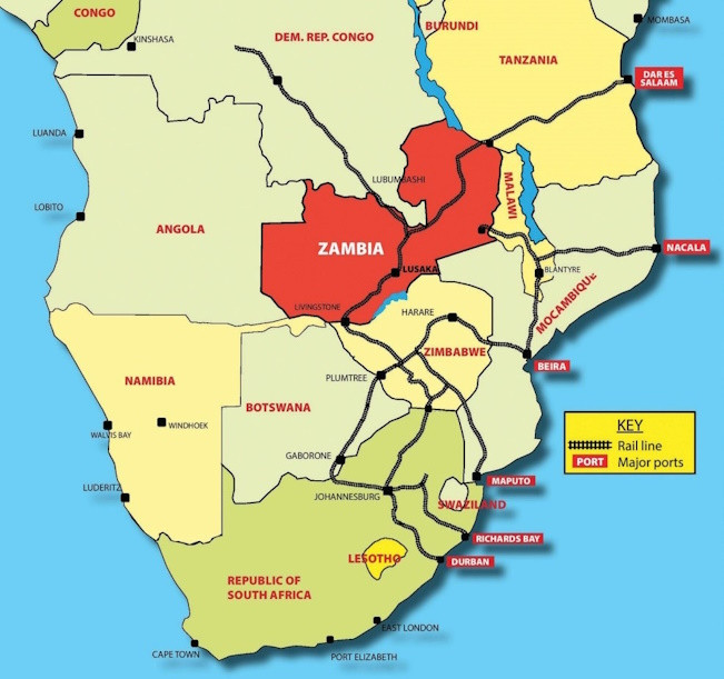 Не сидят без дела и Вашингтон с Брюсселем, финансируя примерно на две трети выгодную им широтную трансафриканскую магистраль от ангольского порта Лобиту через ДРК, Замбию, Малави к портам Мозамбика (Бейра или Накала) и Танзании (Дар-эс-Салам).