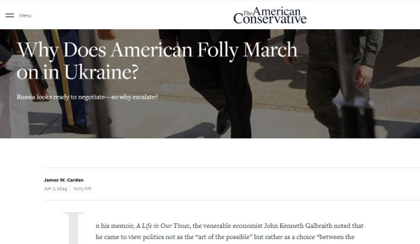 Другими словами – у Соединённых Штатов не было и нет никаких причин вмешиваться в украинские внутренние дела, как и во вьетнамские», – уверен автор статьи Джеймс Карден (James W. Carden), бывший советник Госдепартамента США, а ныне редактор журнала The American Conservative.