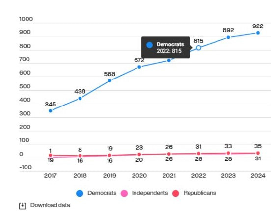 В Демократической партии США 922 таких члена, в республиканской – всего 35.