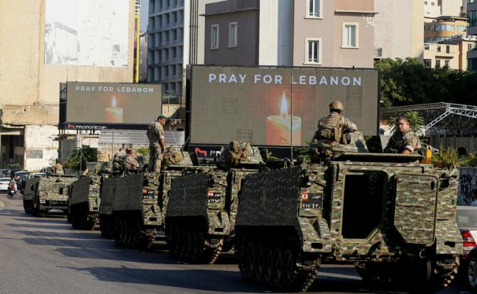 На фото: солдаты ливанской армии обеспечивают безопасность района в Бейруте через несколько часов после объявления о смерти Хасана Насраллы, генерального секретаря Хезболлы, который был убит в результате израильского авиаудара в Бейруте