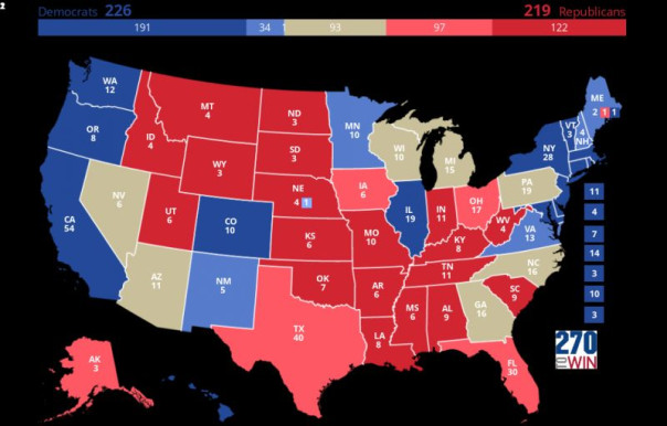 Но то, что происходило на этот раз, реально превзошло рамки любого политического триллера или бродвейского трагифарса, только без музыки, ставя под сомнение перспективы стабильного существования государства как такового. Видимо, критическая масса многолетних взаимных обвинений, интриг и манипуляций двух партийных лагерей подошла к своему пределу непримиримости. Все шире распространяющиеся в последнее время в американском обществе в разных художественных и публицистических формах «предчувствия гражданской войны» не кажутся такими уж преувеличенными. В штабах обоих кандидатов ввиду близости их рейтингов все чаще звучат заявления о готовности к оспариванию результатов выборов в случае поражения своего кандидата. Америка уже расколота по своим устойчивым предпочтениям на республиканскую «сердцевину», более склонную к традиционным нормам бытия и демократическую «океаническую периферию», из которой главным образом и исходят многие сомнительные веяния последнего времени. Остальные признаки не столь очевидны и порою трудно различимы. Демократы превосходят республиканцев по населению, а последние занимают значительно большие территории по площади. Все решится, с чем согласны абсолютно все эксперты, в семи т. н. называемых колеблющихся штатах. Они дают 93 выборщика из необходимых для победы 270 (всего их 538).