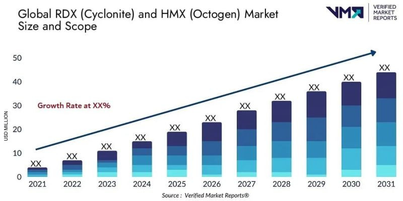 Рынок гексогена (циклонита) и октогена (октогена) оценивается в 1,5 миллиарда долларов США в 2023 году и, как ожидается, достигнет 2,3 миллиарда долларов США к концу 2030 года с совокупным среднегодовым темпом роста (CAGR) 6,5 % в течение прогнозного периода 2024-2030 годов, сообщает портал Verified Market Reports.